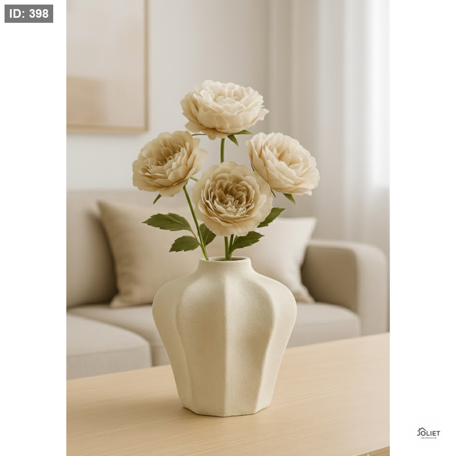 فازة أنيقة بحجم وسط وتصميم عصري بخطوط بارزة ناعمة تضيف لمسة راقية وهادئة لأي مساحة داخل المنزل. مثالية لتنسيق الورد الطبيعي والاصطناعي على الطاولات والكونسولات.