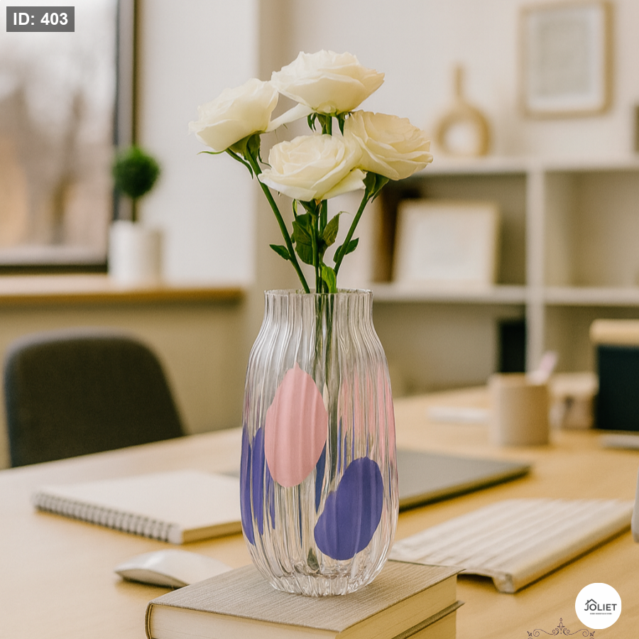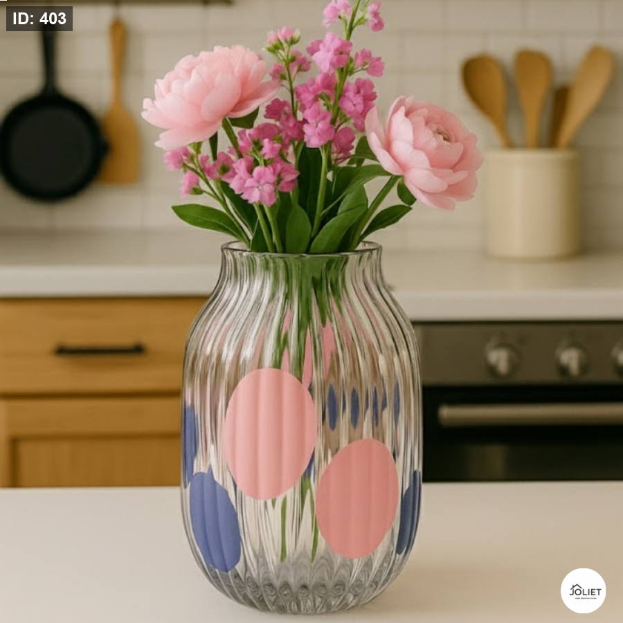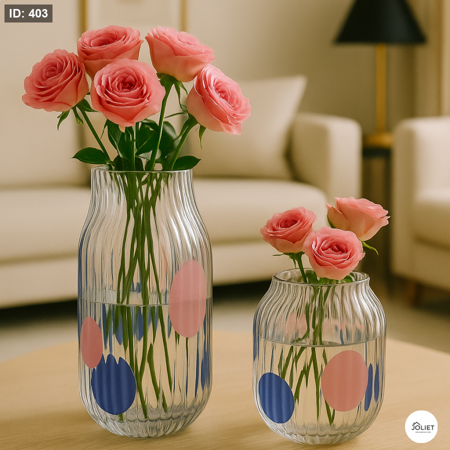 أضف لمسة انتعاش وحيوية إلى ديكور منزلك مع طقم فازات زجاج شفاف مخطط بتفاصيل ملونة ناعمة، تصميم عصري يجمع بين الأناقة والبساطة ويمنح المكان روحًا مبهجة.