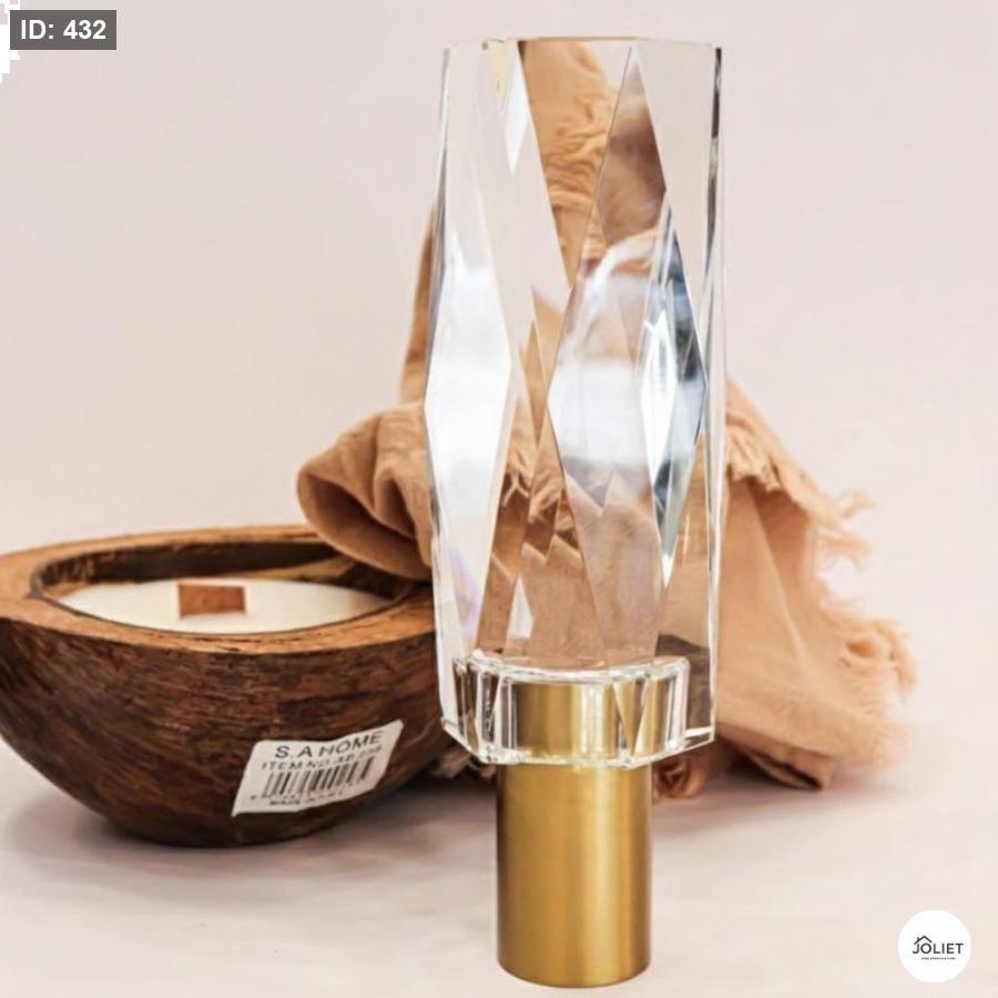 قطعة ديكور راقية مصنوعة من الكريستال الشفاف الفاخر بتصميم هندسي أنيق، مثبتة على قاعدة ذهبية معدنية تمنحها فخامة لا مثيل لها، مثالية لطاولات الصالون والمكاتب وزوايا الديكور الراقية ✨