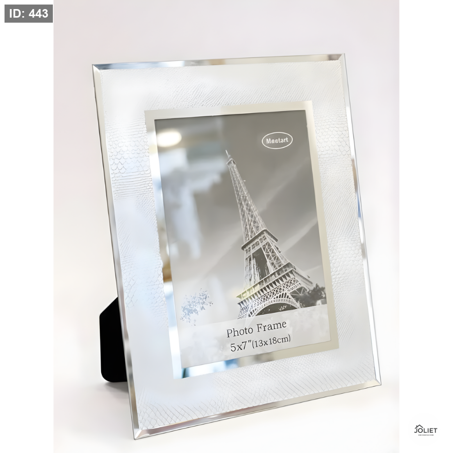 برواز صور أنيق بتصميم راقٍ بلون فضي لامع مع نقشة فاخرة تمنحه لمسة عصرية مميزة، مثالي لإبراز أجمل ذكرياتك بأسلوب أنيق يليق بجميع الديكورات.