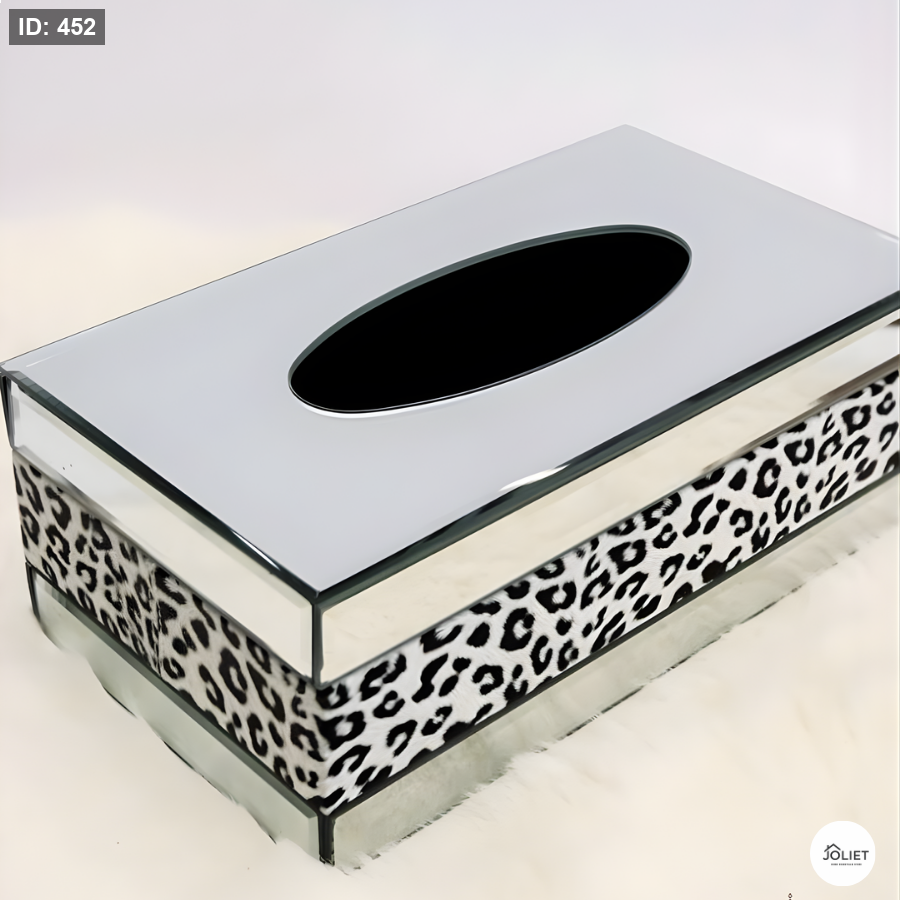 بكيت محارم فاخر بتصميم يجمع بين الزجاج اللامع باللون الأبيض ونقشة الغلامور السوداء الجريئة، ليمنح أي مساحة لمسة أناقة عصرية وفخامة لافتة. قطعة ديكور عملية تناسب الذوق الراقي.