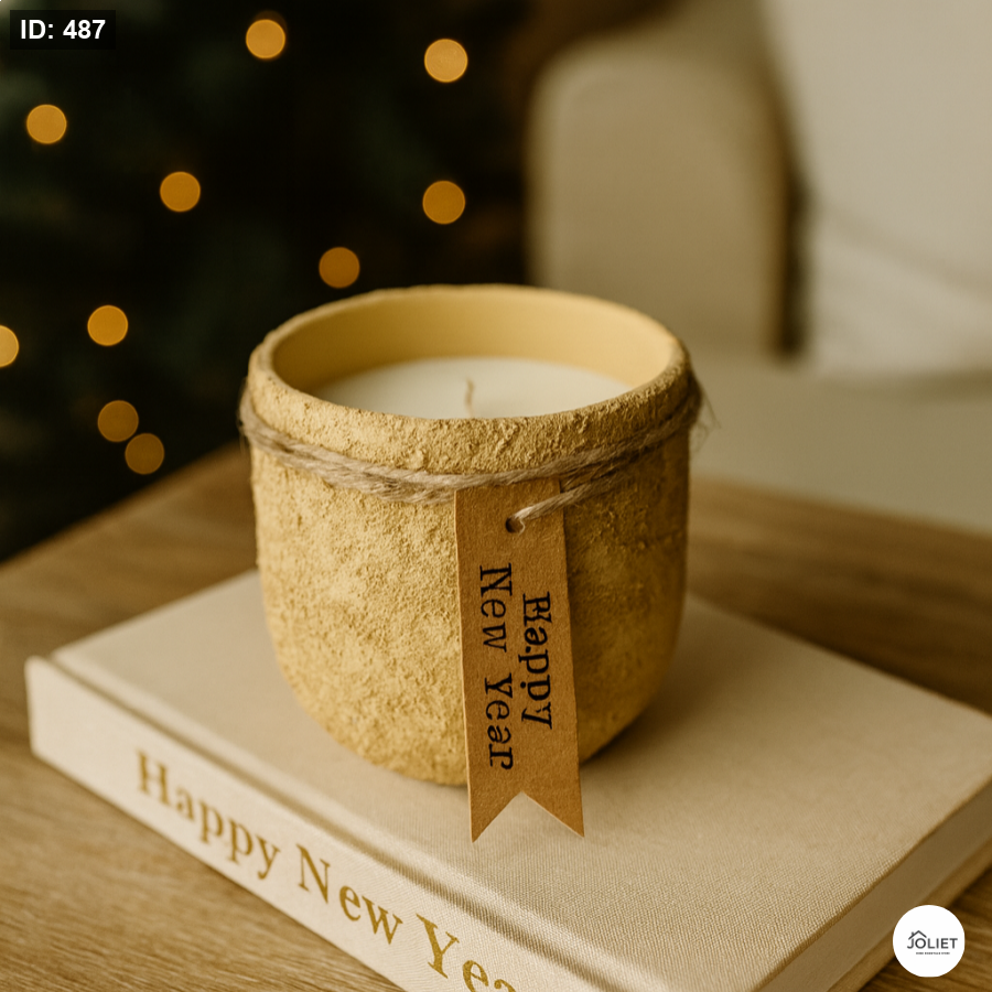 شمعة أنيقة بلون البيج الهادئ بتصميم حجري طبيعي، تضيف إحساسًا بالدفء والراحة لأي مكان. مثالية لغرف المعيشة، غرف النوم، زوايا القراءة، أو كهدية راقية في المناسبات.