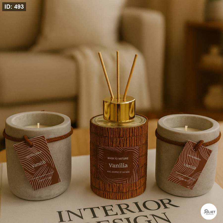🕯️🌿 بكج شموع ومعطر عيدان – رائحة الفانيلا الفاخرة