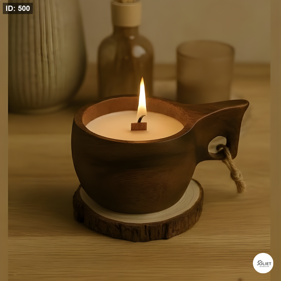 🕯️☕ شمعة خشب بشكل كاسة – دفء طبيعي وتصميم فريد