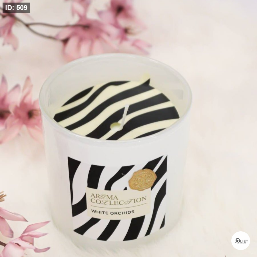 شمعة فاخرة برائحة زهرة الأوركيد البيضاء تمنح المكان لمسة من النعومة والانتعاش الراقي. تتميز بتصميم أنيق بنقشة عصرية، لتكون قطعة ديكور جميلة إلى جانب دورها في نشر عطر هادئ ومريح يضفي أجواء من الاسترخاء والفخامة.
