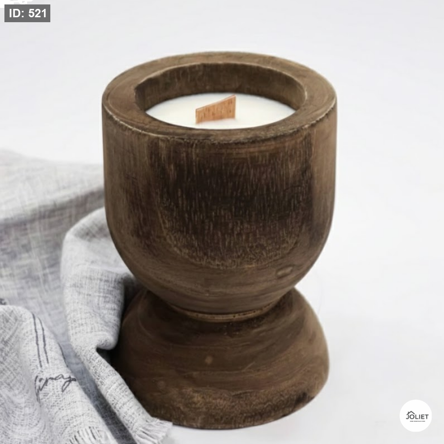 شمعة أنيقة مصنوعة من الخشب الطبيعي بتصميم كلاسيكي ثابت، تجمع بين دفء الخامة وجمال العطر لتكون قطعة ديكور راقية وتجربة عطرية مريحة في آنٍ واحد.